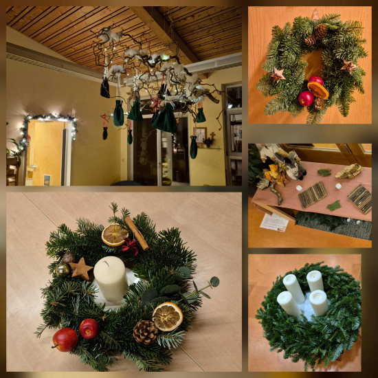 Vielen Dank für die wunderbare Hilfe beim Adventskranzbinden und Schmücken sowie für den wirklich schönen Baum, der uns neben dem geschmückten Haus mit seinem Leuchten am 1. Dezember einen wunderbaren Start in eine gesegnete Adventszeit bereitet hat.